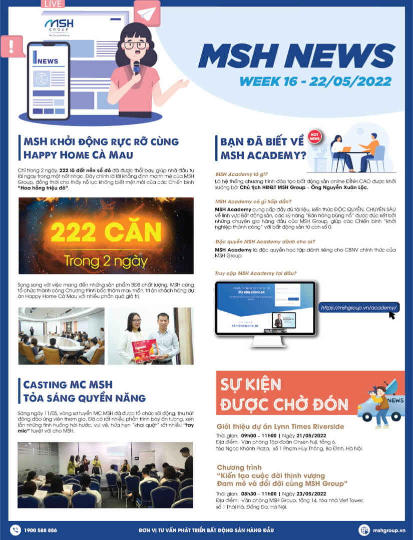 MSH Academy là hệ thống chương trình đào tạo bất động sản online đỉnh cao được khởi xướng bởi Chủ tịch HĐQT MSH Group – Ông Nguyễn Xuân Lộc. Hệ thống giúp cung cấp đầy đủ tài liệu, kiến thức “độc quyền”, “chuyên sâu” về lĩnh vực bất động sản, các kỹ năng chốt sale đỉnh cao và cách thức bán hàng bùng nổ đã được đúc kết, chia sẻ bởi tâm huyết của các chuyên gia hàng đầu MSH Group, giúp các bạn có thể “khởi nghiệp thành công” với bất động sản từ con số 0. MSH Academy là chương trình đặc quyền học tập dành riêng cho CBNV chính thức của MSH Group. Vui lòng truy cập đường link https://mshgroup.vn/academy/ để tìm hiểu và tham gia MSH Academy.