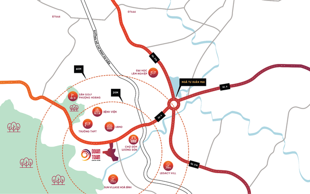 Nằm ở trung tâm của “thủ phủ” du lịch – nghỉ dưỡng Lương Sơn, 9 DownTown có phía Bắc giáp Trang viên Đồng Gội Pandora Eco Retreat; phía Nam là Legacy Hill, Sun Village Hòa Bình, Beverly Hill Lương Sơn Resort, An Viên Villa; phía Đông Nam là sân golf Skylake, động Đá Bạc… Sự bùng nổ về du lịch của Lương Sơn trong các năm qua, điển hình là 2020 với 127.000 lượt khách (trong đó có 76.000 khách quốc tế) chính là đòn bẩy nâng tầm giá trị và lợi thế kinh doanh của dự án này.