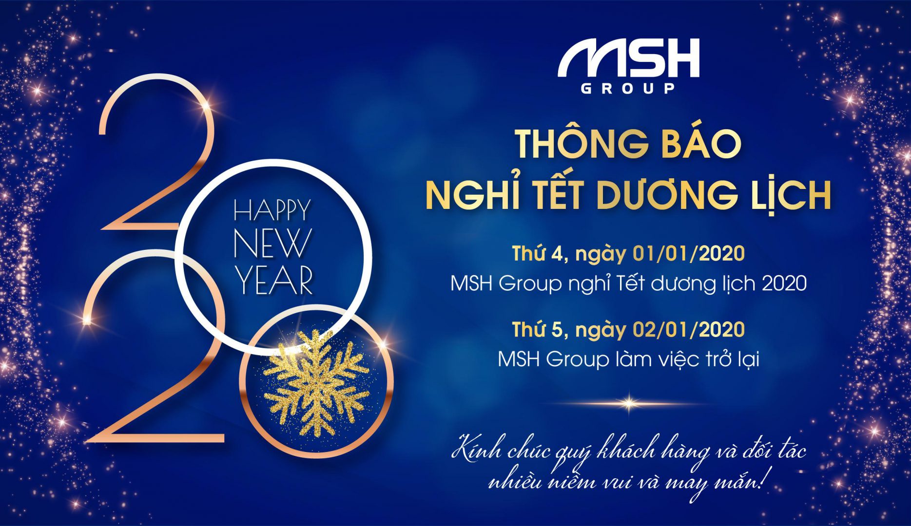 MSH Group xin trân trọng thông báo lịch nghỉ Tết Dương lịch 2020 như sau: